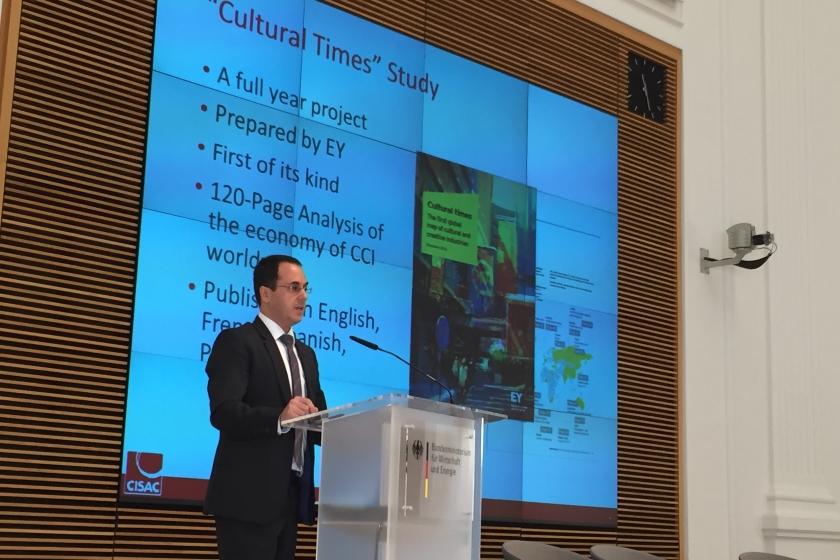 On 23 September, CISAC Director General Gadi Oron presented the results of the EY-prepared study “Cultural Times – The First Global Map of Cultural and Creative Industries” at the 2016 Berlin Research Symposium on Culture and Creative Industries (CCIs) upon the invitation by the German government and CISAC member society GEMA. Hosted by the Federal Government’s Centre for Excellence for the Cultural and Creative Industries as part of the Initiative for Cultural and Creative Industries at the Federal Ministry for Economic Affairs and Energy, the symposium united creative industry, media, economic and scientific experts and professionals.