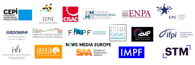 We represent a broad coalition of organisations in Europe’s creative and cultural sectors, including music, visual, audiovisual, and literary authors; press publishers of newspapers, magazines and specialised publications, book, music, academic publishers; recorded music, film and audiovisual producers; publishers of films and audiovisual content online and offline; distributors and photo agencies.